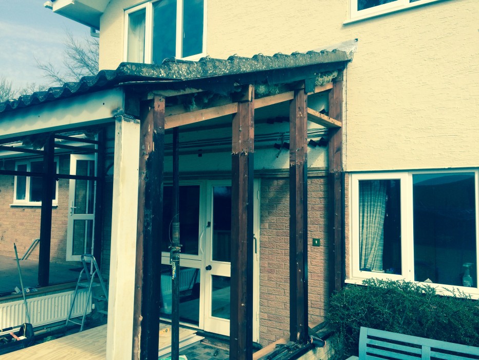 THE PROJECT INCLUDED REMOVING FRONT AND SIDES ,SUPPORTING FRONT WITH STEEL FRAME (FABRICATED ON SITE) SUPPLYING DOUBLE PATIO DOORS AND WINDOWS INSULATING CEILING AND PLASTERING INSIDE, REPLACING DAMP ROOF MEMBRANE AND INSULATING FLOOR